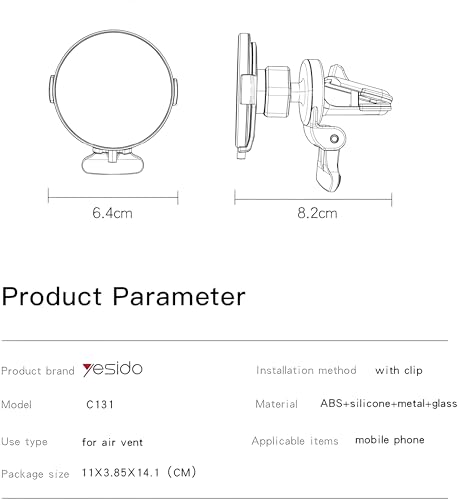 - [يدعم التركيب على فتحة التكييف:] : يأتي مع مشبك قوي يُثبت الحامل على فتحات التهوية في السيارة بثبات، مما يحافظ على استقرار الهاتف ويوفّر تجربة استخدام مريحة أثناء القيادة.