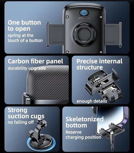 - [قاعدة شفط قوية لتثبيت ثابت]: يأتي الحامل بقاعدة شفط متينة تلتصق بإحكام على التابلوه أو الزجاج الأمامي، مما يمنحك تثبيتًا فائق الثبات حتى في القيادة على الطرق غير المستوية. يوفر أمانًا كاملاً لهاتفك أثناء الرحلات الطويلة أو اليومية.