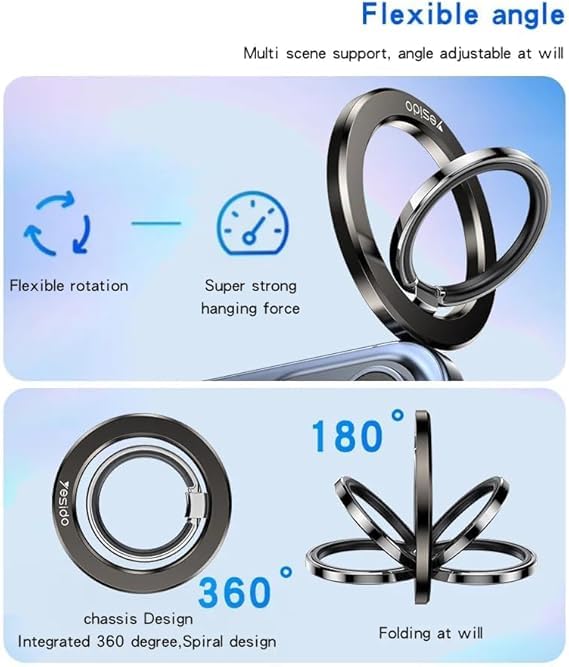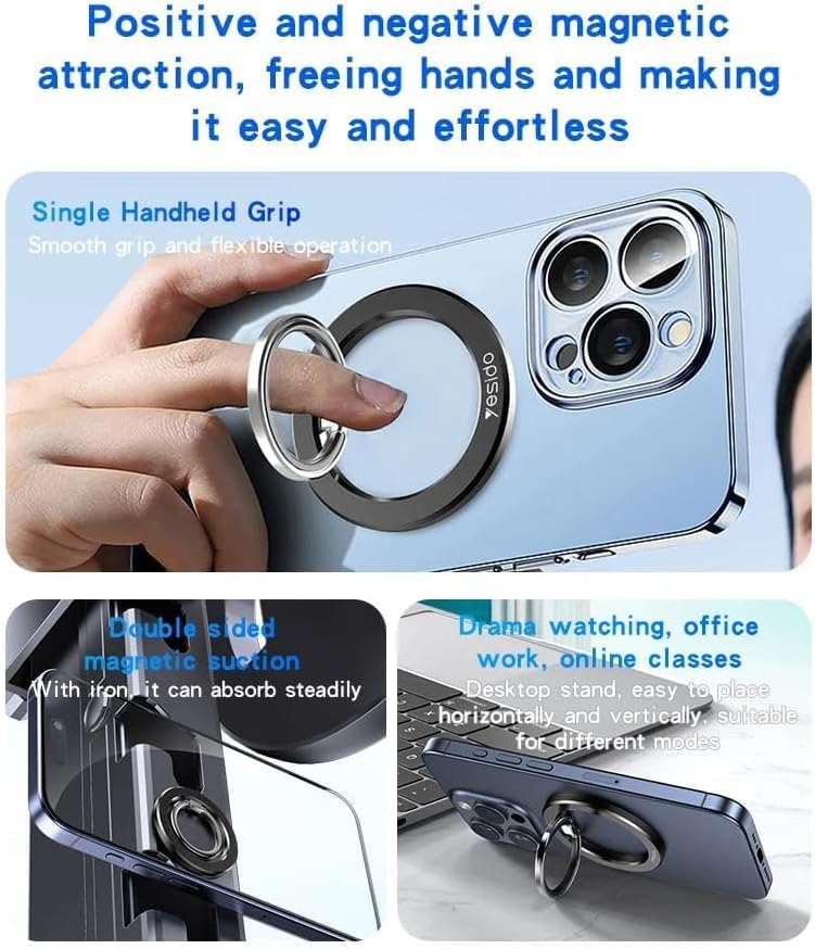 - [مسكة إصبع قوية وثابتة]: توفر الحلقة المغناطيسية المزدوجة مسكة إصبع آمنة للهاتف، تمنحك تحكمًا كاملاً أثناء الاستخدام بيد واحدة، سواء عند التصفح أو التصوير أو الكتابة. تضمن الثبات الكامل وتقلل من احتمالية سقوط الهاتف، ما يجعلها مثالية للاستخدام اليومي أثناء التنقل أو العمل.