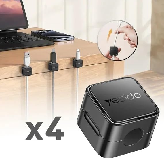 - [مغناطيس مدمج لتثبيت الكابلات بسهولة]: مزود بمغناطيسات صغيرة داخل المشابك لتثبيت رؤوس الكابلات بإحكام دون انزلاق. يسهل فصل وإعادة تركيب الكابلات بسرعة، ويوفّر وصولًا مباشرًا لها دون الحاجة للبحث أو التشابك، مما يجعل كل شيء في متناول يدك.