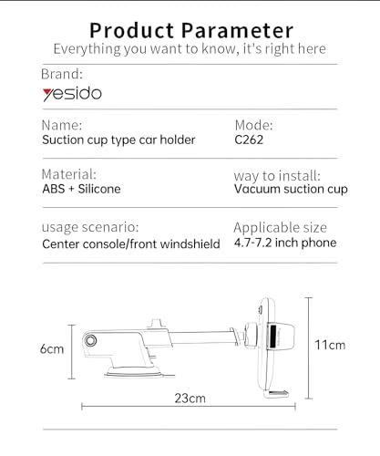 Next store - حامل جوال للسيارة بقاعدة شفط قوية من Next Store ، ستاند هاتف يثبت على الزجاج أو الطبلون، يدور 360 درجة، ثابت وآمن، قابل للتعديل موديل C262، سهل الاستخدام بيد واحدة