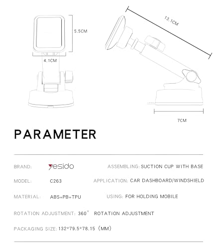 Next store - حامل جوال مغناطيسي للسيارة بقاعدة شفط قوية من Next Store، حامل هاتف يثبت على الزجاج أو الطبلون، يدور 360 درجة، ثابت وآمن موديل C263 ، سهل التركيب والاستخدام بيد واحدة