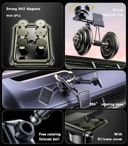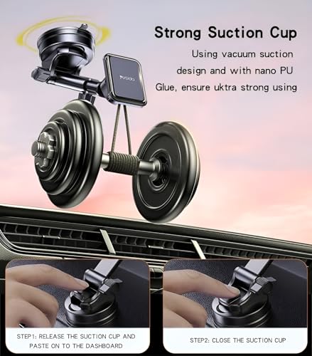 - [ قاعدة شفط قوية على الزجاج أو الطبلون ]: مزود بقاعدة شفط عالية الأداء تلتصق بقوة على الزجاج الأمامي أو الطبلون دون الحاجة إلى أدوات. تثبيت محكم لا يتأثر بالحرارة أو الاهتزاز، ويمكن إزالته بسهولة دون أن يترك أثرًا. اختيار مثالي للباحثين عن تثبيت قوي ومرونة في مكان الاستخدام داخل السيارة.