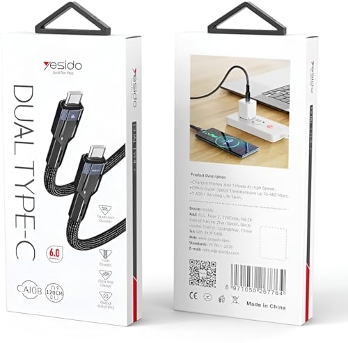 - [ طول مثالي 1.2 متر للاستخدام المرن ] يوفر طول 1.2 متر حرية استخدام مريحة في جميع الأماكن سواء في المكتب أو السيارة أو المنزل. يسمح لك بالشحن أثناء العمل أو التصفح أو الاسترخاء دون التقيد بالقرب من مصدر الطاقة، مما يجعله عمليًا وسهل الحمل والاستخدام اليومي.