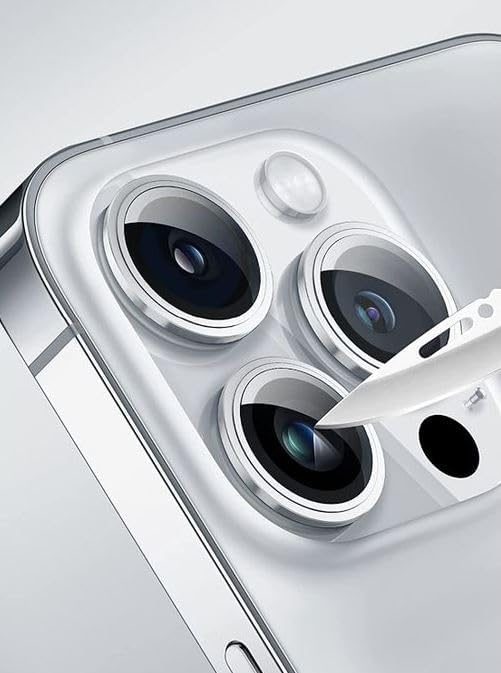 Next store - عدسة حماية للكاميرا مصنوعة من الزجاج المقوى والمعدن بدرجة صلابة 9 من نيكست ستور، حلقة كاميرا معدنية مقاومة للخدوش والصدمات [شفافة عالية الدقة HD] [مقاومة للتآكل] متوافقة مع آيفون 12 برو (فضي)