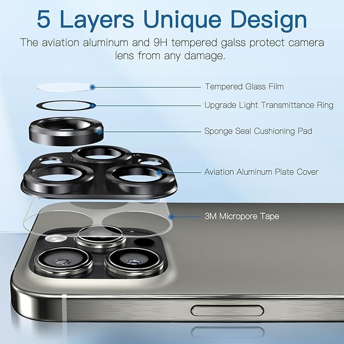 - [حماية فائقة ومتانة عالية:] يقدم واقي عدسة الكاميرا حماية عسكرية ضد الصدمات والخدوش، مما يحافظ على العدسة في أفضل حال ويمنع أي تلف أو خدش قد يؤثر على جودة الصور والفيديو، ليضمن لك تجربة تصوير واضحة ونقية طوال الوقت.