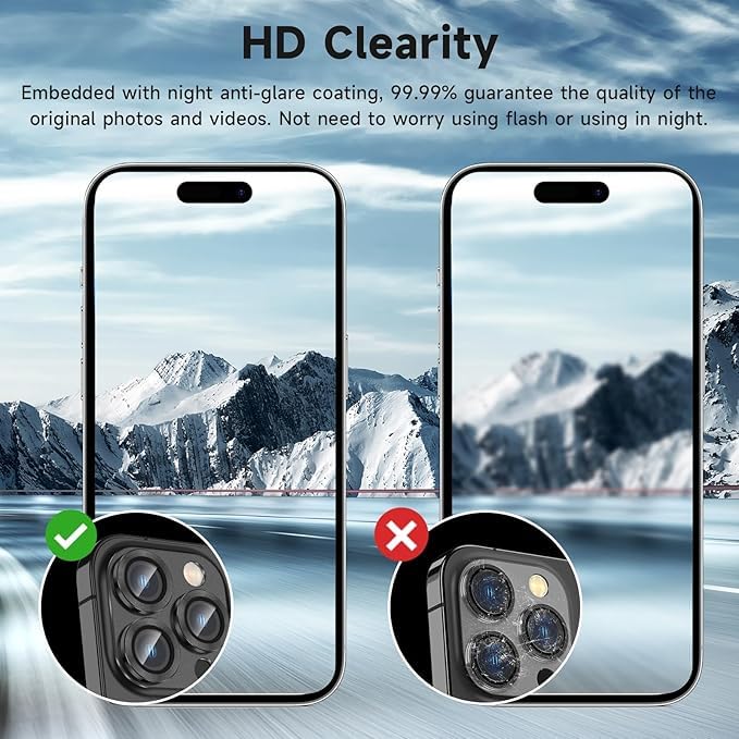 - [تركيب سهل وخالٍ من الفقاعات:] يتميز الواقي بتقنية لاصقة ذكية تجعل عملية التركيب بسيطة وسريعة، بدون ظهور فقاعات هواء أو غبار، مما يضمن تثبيتًا متينًا ومتناسقًا يحمي العدسة بأعلى كفاءة.