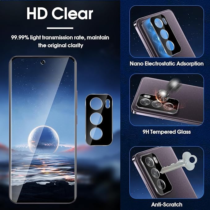 - [تركيب سهل وخالٍ من الفقاعات:] يتميز الواقي بتقنية لاصقة ذكية تجعل عملية التركيب بسيطة وسريعة، بدون ظهور فقاعات هواء أو غبار، مما يضمن تثبيتًا متينًا ومتناسقًا يحمي العدسة بأعلى كفاءة.