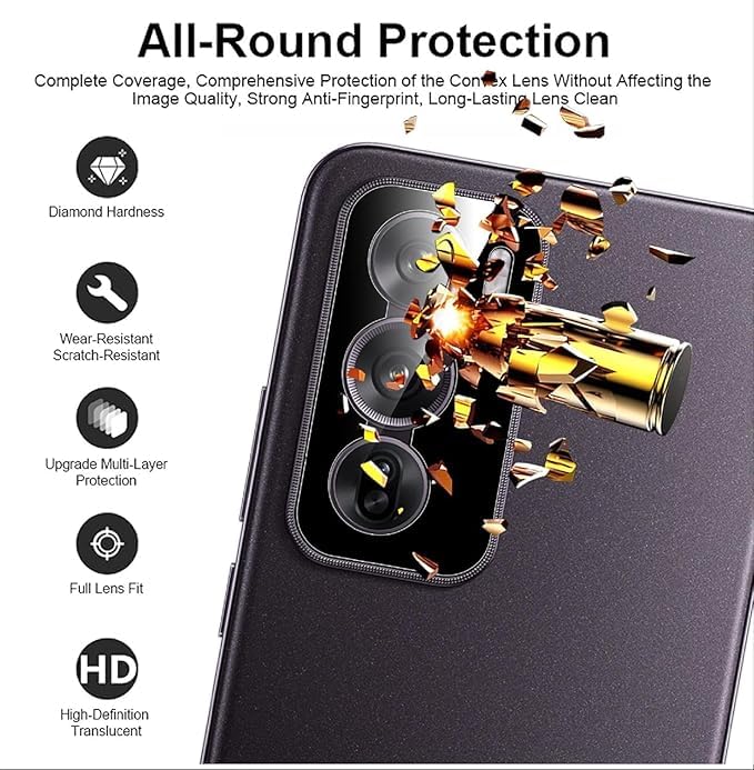- [مقاومة للخدوش وطويلة الأمد:] يحافظ الواقي على مظهره الواضح بفضل مقاومته العالية للخدوش، مما يجعله خيارًا مثاليًا للاستخدام اليومي، حيث يمنع الخدوش الناتجة عن المفاتيح أو الأشياء الحادة، ويطيل عمر عدسة الكاميرا بشكل ملحوظ.