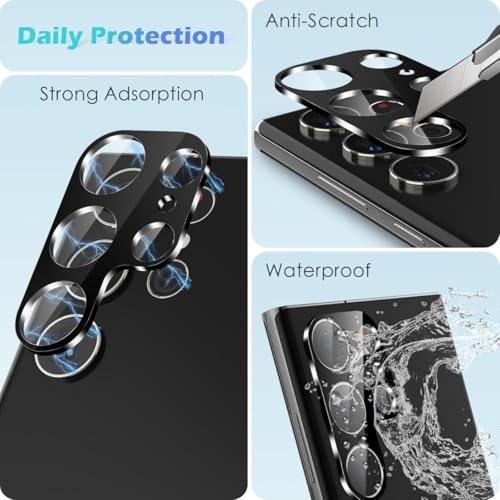 Next store - واقي عدسة كاميرا من الزجاج المقوى بتصميم رفيع جدًا وتغطية كاملة فائقة الوضوح وعالية الدقة HD مقاوم للصدمات والخدوش لموبايل سامسونج جالاكسي S24 الترا من نكست ستور، لون أسود