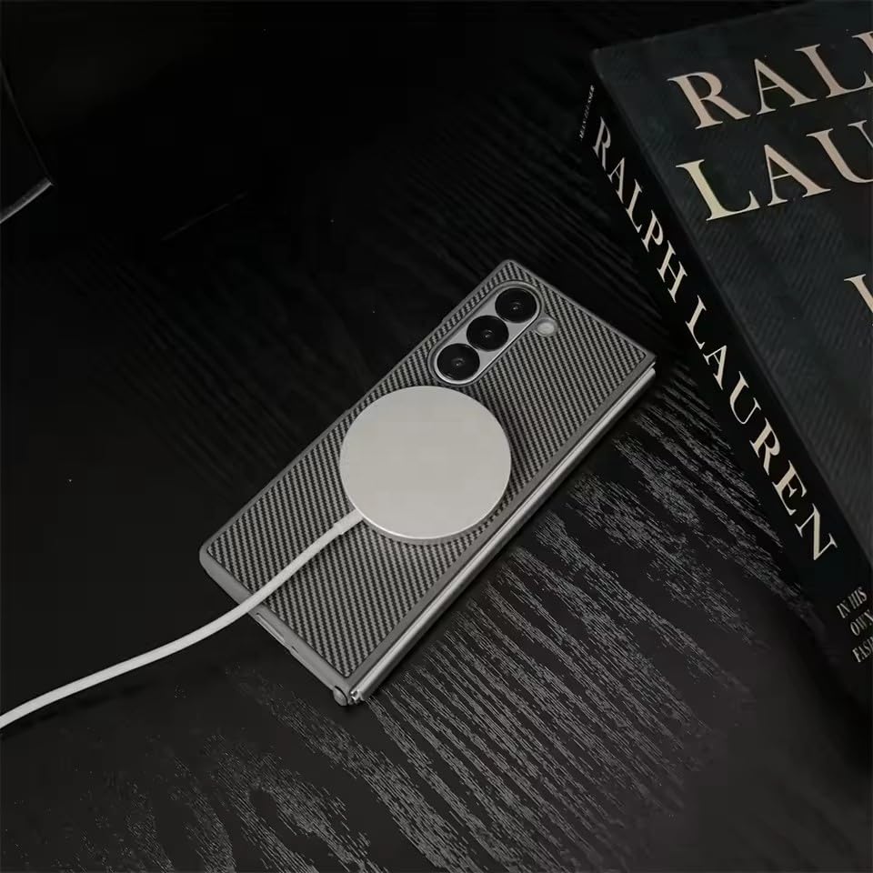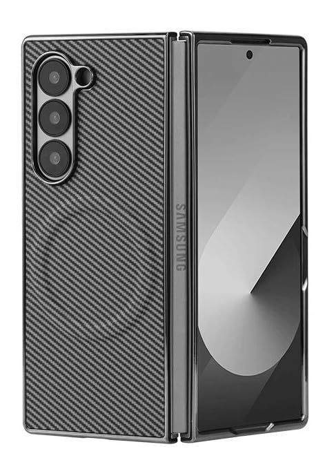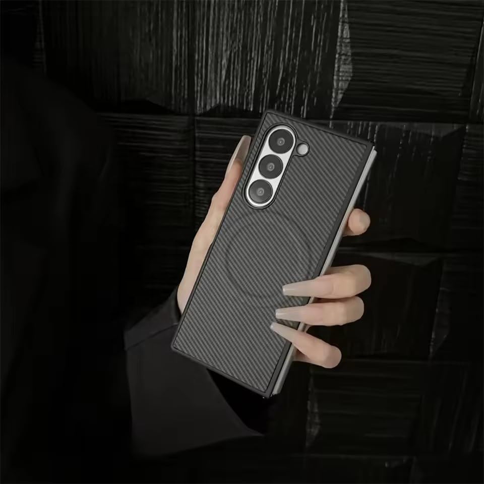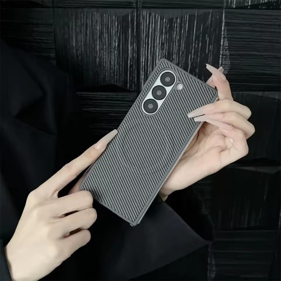Next store - جراب أنيق بتصميم ألياف كربونية متوافق مع موبايل سامسونج جالاكسي زد فولد 3 من نيكست ستور، جراب مع حماية كاملة للمفصلات، جراب صلب فائق النحافة ومقاوم للصدمات والخدوش (لون رمادي)