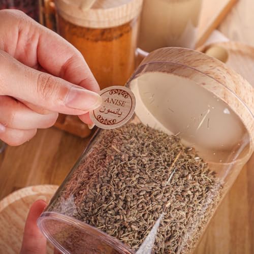 - [ملحق بملصقات مخصصة]: يأتي الطقم مزودًا بمجموعة من الملصقات بأسماء التوابل > لتسهيل التعرف على المحتويات وتنظيم المطبخ بطريقة أنيقة وعملية.