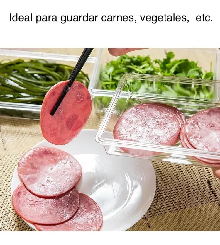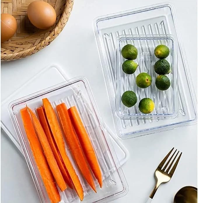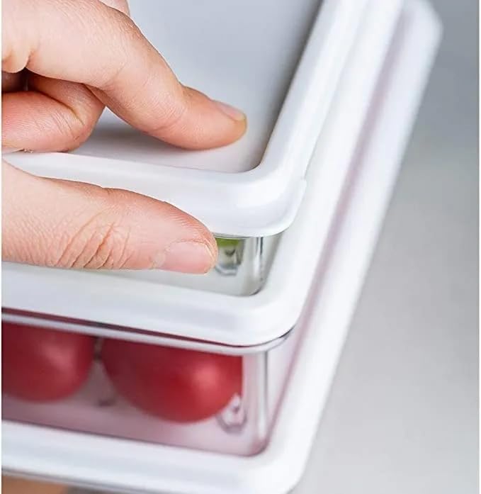 - [تصميم أنيق وشفاف]: تقدم Next Store علبة ثلاجة مصنوعة من أكريليك نقي عالي الجودة، بتصميم أنيق يناسب جميع ديكورات المطبخ ويسمح برؤية المحتوى الداخلي بوضوح دون الحاجة للفتح.