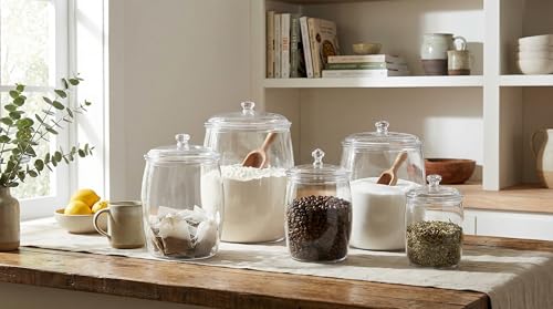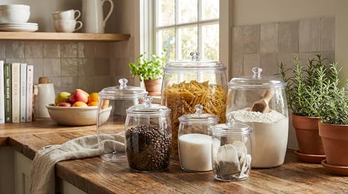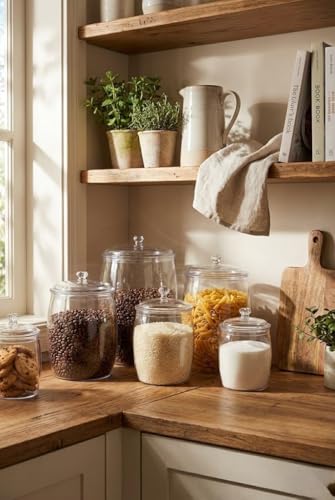 Next store - طقم برطمانات تخزين زجاجية شفافة (3 قطع) بأحجام متدرجة، من Next Store حاويات طعام بغطاء زجاجي ومقبض كلاسيكي، منظمات مطبخ لحفظ البقوليات والتوابل