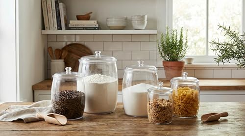 - طقم تخزين متكامل (3 أحجام): يتكون الطقم من ثلاث حاويات زجاجية بأحجام وسعات متدرجة لتلبي احتياجات التخزين في مطبخك، بدءاً من حفظ كميات كبيرة من الأرز والمعكرونة، وصولاً إلى تخزين المكسرات والتوابل في الحاويات الأصغر.