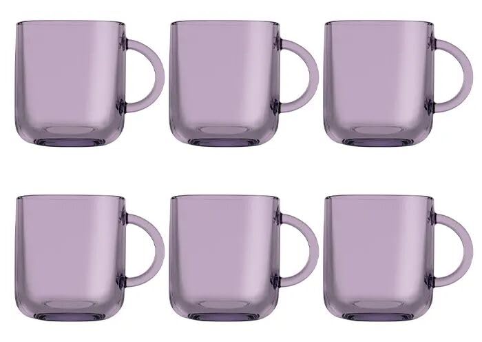 Next store - طقم أكواب زجاج شفاف من Next store – عدد 6 قطع × 245 مل | تصميم أنيق وعصري مثالي لتقديم الشاي، القهوة، العصائر والمشروبات الساخنة والباردة للمنزل والمكتب (ارجواني)
