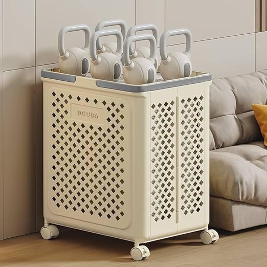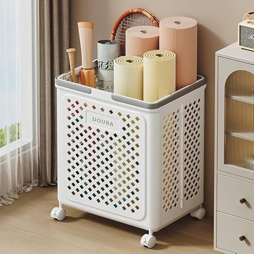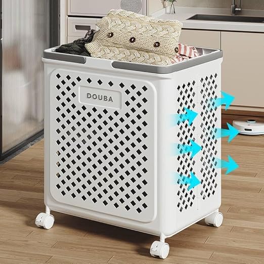 - [ عجلات متينة لحركة سلسة:] مزودة بعجلات قوية تتيح لك تحريك السلة من غرفة لأخرى بكل راحة وسهولة، حتى عندما تكون ممتلئة بالملابس، دون الحاجة لرفعها أو حملها.