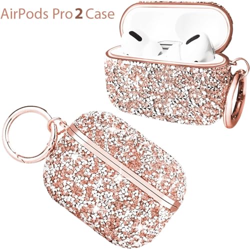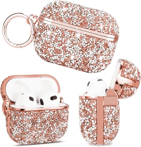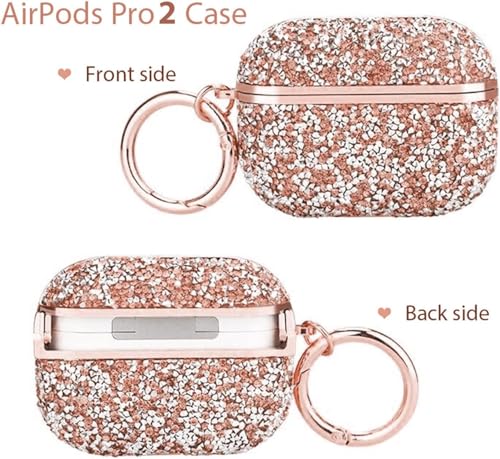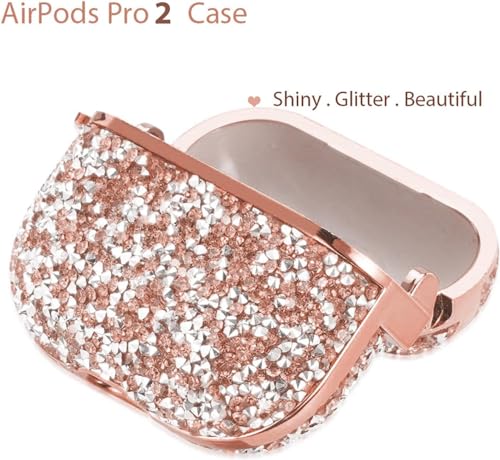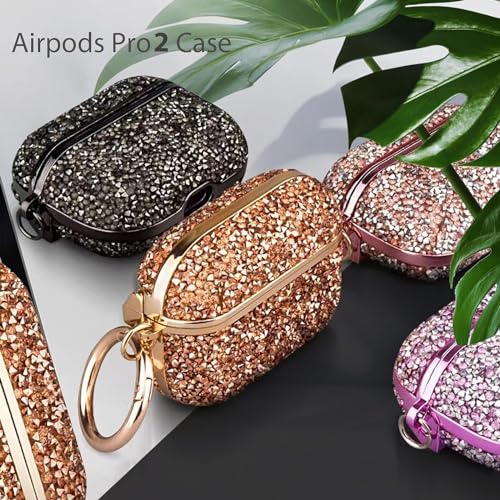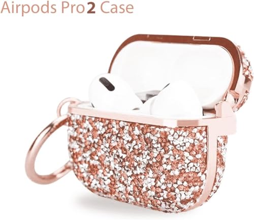 Next store - علبة سماعات ايربودز برو من البولي كربونات نيكست ستور، مرصعة بحجر الراين اللامع الماسي اللطيف للبنات مع سلسلة مفاتيح محمولة (ذهبي وردي)