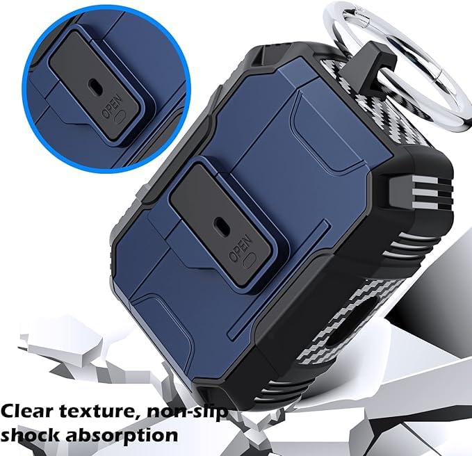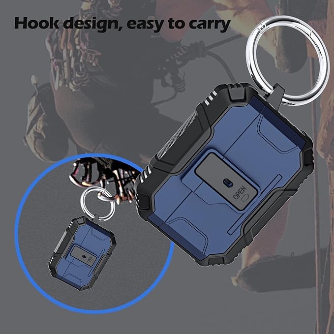 - Carabiner معدني محمول وآمن: يأتي مع Carabiner معدني قوي يسمح لك بحمل Air pods بأمان، سواء كنت في المنزل أو في السفر، مع ضمان عدم فقدان السماعات بفضل التثبيت الآمن على حقيبتك أو ملابسك.