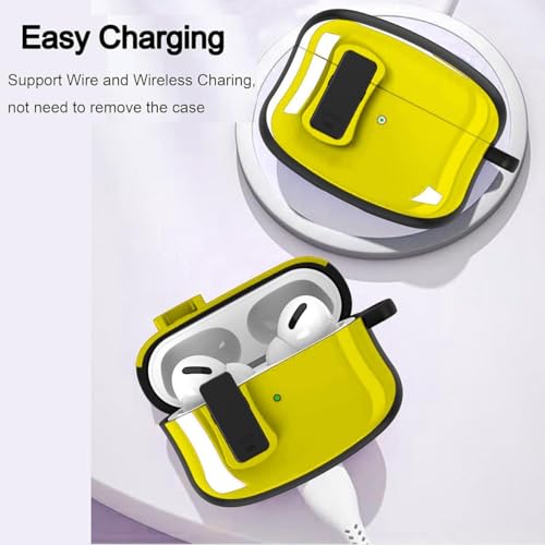 Next store - جراب حماية متوافق مع هيكل سماعات ايربودز برو سلسلة مفاتيح، متين بقفل امان ومدرع بنمط عسكري، صلب مضاد للصدمات ومقاوم للخدوش لسماعات 2019 من Next store (اصفر)، البولي يوريثين الحراري