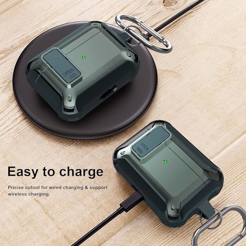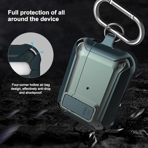 Next store - جراب حماية كامل بقفل امان متوافق مع ابل ايربود للجيل الثالث، جراب متين مضاد للصدمات، جراب متوافق مع سماعات ايربود الجيل الثالث للرجال من Next store (اخضر)، البولي يوريثين الحراري