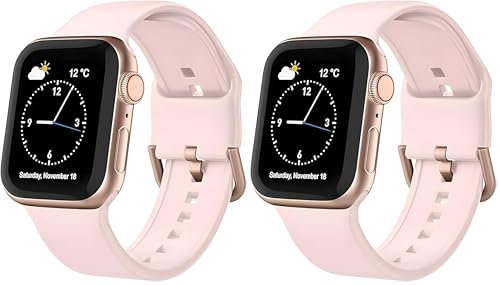 Next store - نكست ستور متوافق مع سوار ساعة ابل 49 ملم 45 ملم 44 ملم 42 ملم، سوار رياضي من السيليكون الناعم مع مشبك كلاسيكي لسلسلة اي ووتش 7 6 5 4 3 2 1 للنساء والرجال (بينك) (عبوة من قطعتين)