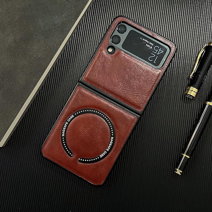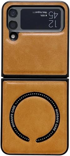 Next store - جراب من الجلد الصناعي الفاخر متوافق مع موبايل جالاكسي Z فليب 4 نيكست ستور يدعم ماج سيف شحن لاسلكي لسامسونج بلون أصفر للبالغين الجنسين