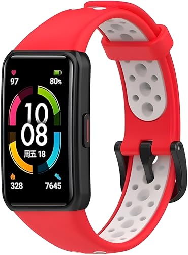 Next store - سوار بديل متوافق مع ساعة هونر باند 6، بتصميم رياضي مزدوج اللون قابل للتنفس مناسب للرجال والنساء، لون أحمر وأبيض من نيكست ستور