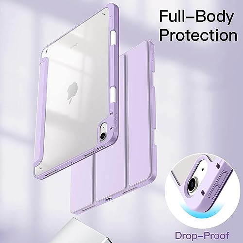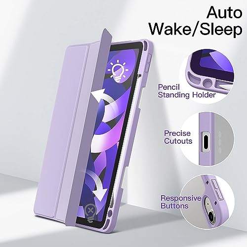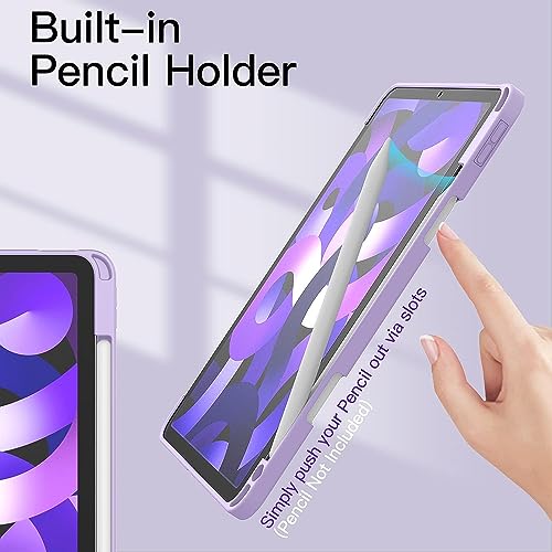 Next store - حافظة متوافقه مع جهاز ايباد اير 5/4 (2022/2020 الجيل الخامس/الرابع 10.9 انش) مع حامل قلم، غطاء خلفي شفاف نحيف مضاد للصدمات، خاصية التنبيه/السكون التلقائي من Next store (لافندر)، البولي يوريثين الحراري