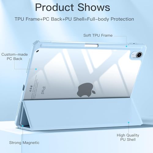 Next store - حافظة متوافقه مع جهاز ايباد اير 5/4 (2022/2020 الجيل الخامس/الرابع 10.9 انش) مع حامل قلم، غطاء خلفي شفاف نحيف مضاد للصدمات، خاصية التنبيه/السكون التلقائي من Next store (سماوى)