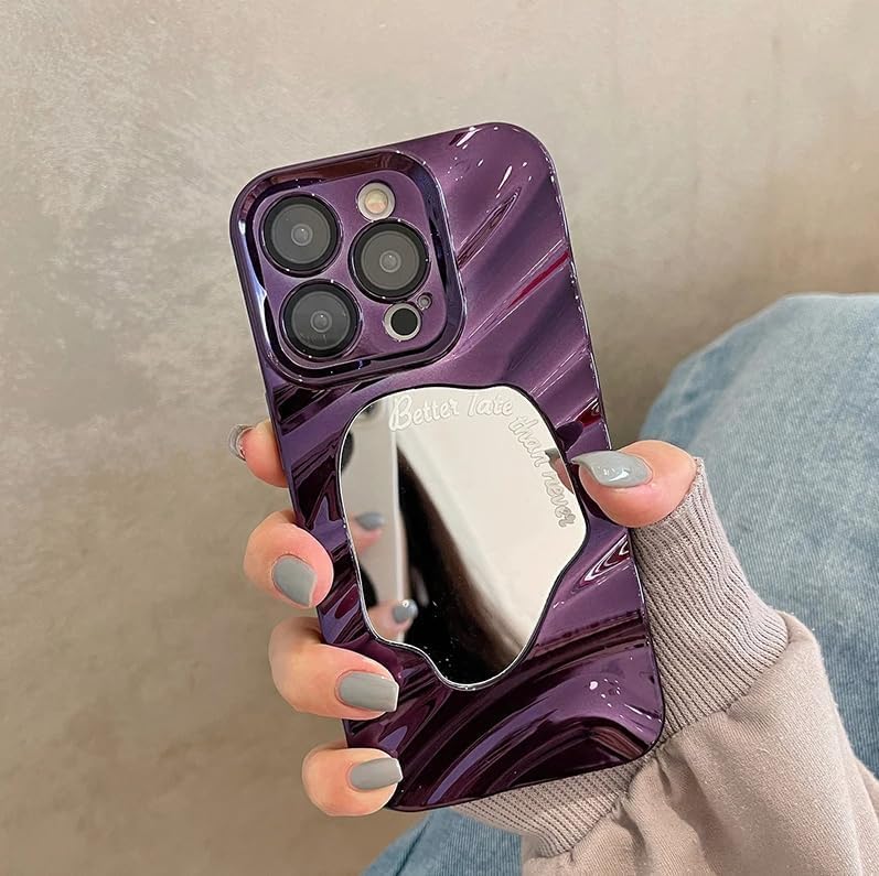 Next store - جراب حماية فاخر مضاد للصدمات مطلي بتموجات الماء متوافق مع آيفون 12 من نكست ستور، مرآة بتصميم غير متماثل، غطاء خلفي لحماية الكاميرا (لون أرجواني)
