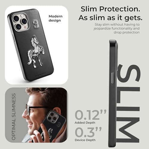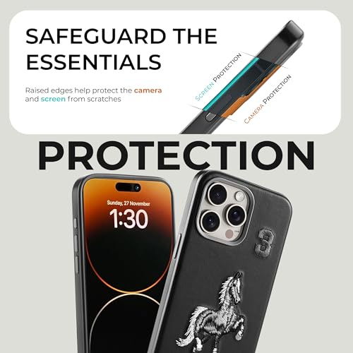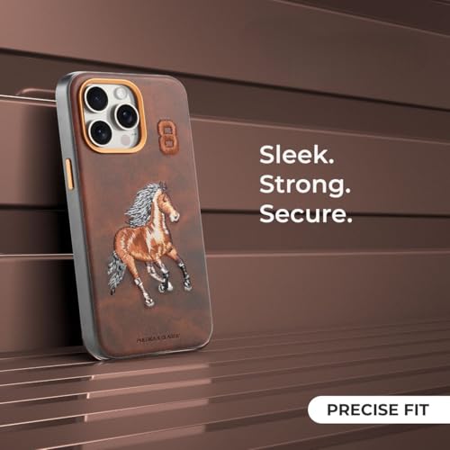 Next store - جراب حماية متوافق مع آيفون 15 برو ماكس مطرز أنيق وعصري مقاوم للخدش مع ظهر جلدي للرجال والنساء من نكست ستور - سانتا باربرا بولو (لون برونز الحصان)