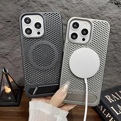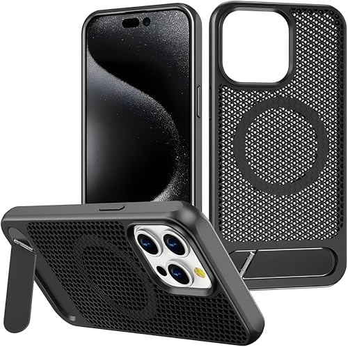 Next store - جراب حماية من Next Store متوافق مع iPhone 16 Pro Max، مصنوع من البولي يوريثين الحراري، تبديد حرارة فعال، مع مسند غير مرئي، يدعم الشحن المغناطيسي ، مقاوم للصدمات. (اسود)
