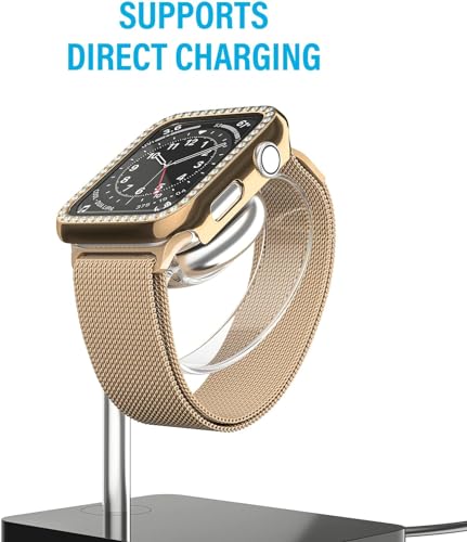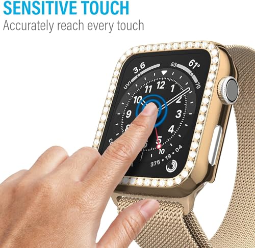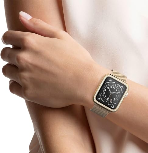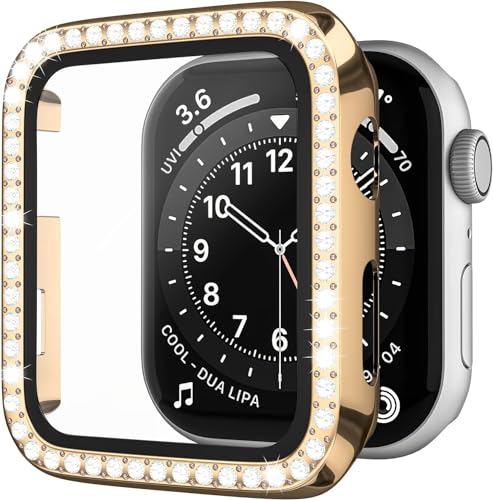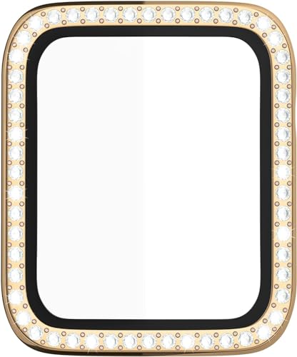 Next store - حافظة حماية رفيعة مزينة بكريستال لامع مع شاشة حماية من الزجاج المقوى متوافقة مع ساعة اي ووتش 45 ملم سلسلة 3/2/1 للنساء والرجال من نكست ستور (لون ذهبي)