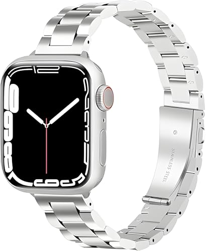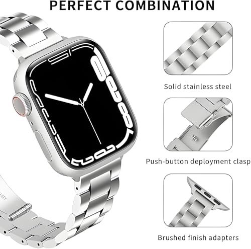 Next store - جراب نكست ستور متوافق مع سوار اي ووتش 41 ملم 40 ملم 38 ملم سوار رفيع من الفولاذ المقاوم للصدأ لساعة اي ووتش سلسلة 1 إلى 9 للنساء، فضي