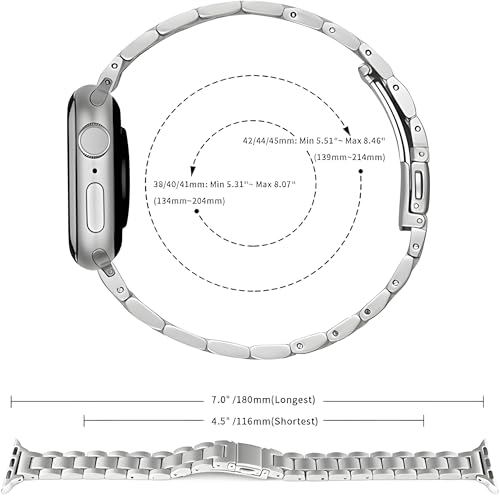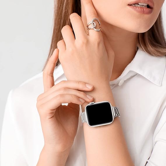 - متوافق مع مختلف موديلات iWatch: لا داعي للقلق بشأن توافق السوار مع ساعة iWatch الخاصة بك، فهو صُمم ليتناسب مع أحجام الساعة الأكثر شيوعًا: 38 ملم، 40 ملم، و41 ملم، مما يجعله مثاليًا لمجموعة واسعة من موديلات iWatch من السلسلة 1 حتى 9. سواء كانت لديك إحدى الإصدارات القديمة أو الجديدة من الساعة، يمكنك الاعتماد على هذا السوار لتوفير ملاءمة مثالية. يوفر هذا التوافق الواسع مرونة كبيرة للمستخدمين، حيث يجمع بين الراحة والمظهر العصري.