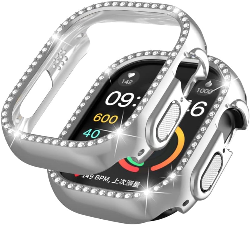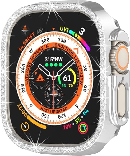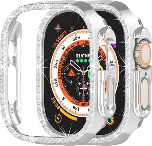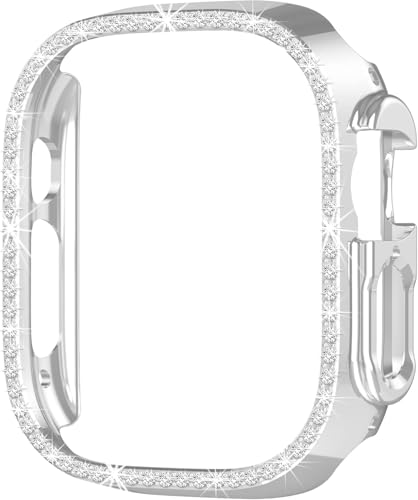 Next store - جراب حماية لامع من البولي كربونات مزين بالماس وحجر الراين للنساء والبنات، للساعات الذكية اي ووتش الترا 2 / اي ووتش الترا 49 ملم من نيكست ستور، فضي