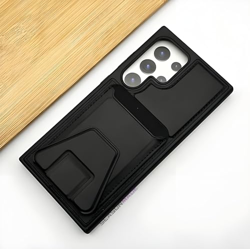 Next store - جراب حماية من الجلد بتصميم محفظة متوافق مع سامسونج جالاكسي S24 الترا مع جيب للكروت وحامل كروت مغناطيسي وواقي مضاد للصدمات مناسب للرجال والنساء والبالغين من نكست ستور، أسود