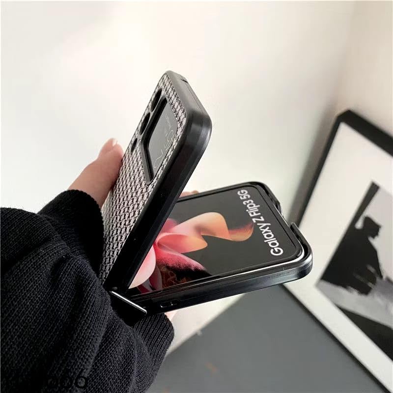Next store - جراب حماية متوافق مع سامسونج جالاكسي زد فليب 5 من نيكست ستور، مصنوع من الجلد والبولي كربونات الممتاز، مضاد للصدمات، مضاد للخدش، حماية كاملة للهيكل، أنيق وعصري (أسود)
