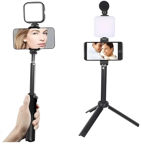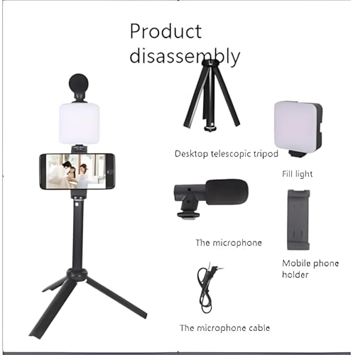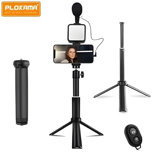 Next store - مجموعة تصوير فيديو متكاملة من Next Store تتضمن حامل ثلاثي للهاتف، ضوء LED، وميكروفون، مثالية للبث المباشر وتسجيل الفيديو بجودة عالية ومحمولة وسهلة الاستخدام