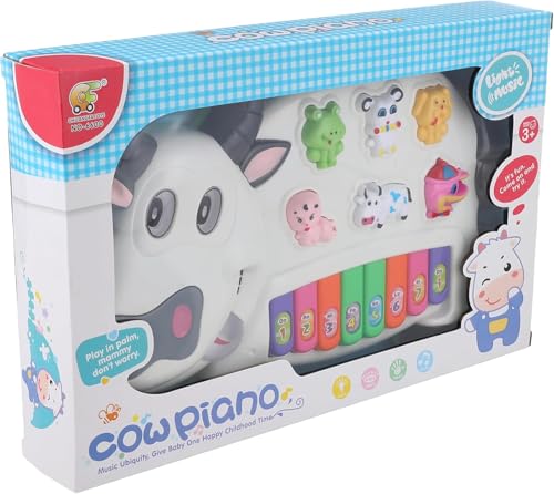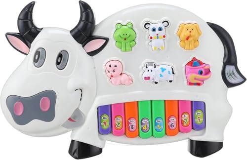 Next store - بيانو موسيقي على شكل بقرة من Next Store مع 3 أوضاع لأصوات الحيوانات وأضواء وامضة وموسيقى رائعة، متعدد الألوان