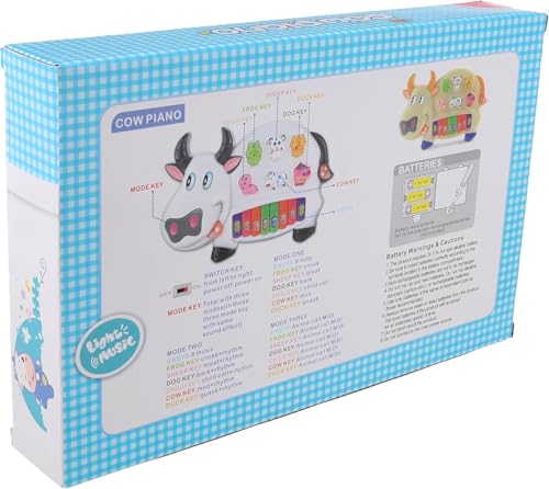 - [أوضاع صوتية متنوعة للأطفال: ] يتيح هذا البيانو للأطفال التفاعل مع ثلاثة أوضاع صوتية لأصوات حيوانات مختلفة، مما يعزز تجربتهم ويحفز خيالهم. مع كل تغيير في الوضع، يمكن للأطفال سماع صوت البقرة وغيرها من الأصوات المثيرة التي تساهم في تعلمهم للأصوات والحيوانات بطريقة ممتعة، مما يجعل التعلم أكثر تفاعلًا وإثارة.
