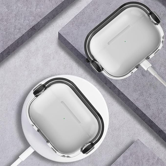 - [دعم الشحن اللاسلكي] : تم تصميم الغطاء بحيث يدعم الشحن اللاسلكي بالكامل، دون الحاجة لإزالته. يتيح لك ذلك شحن سماعتك بسهولة وراحة، مع الحفاظ على حمايتها في جميع الأوقات.