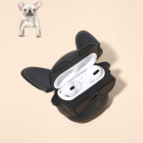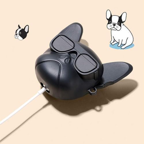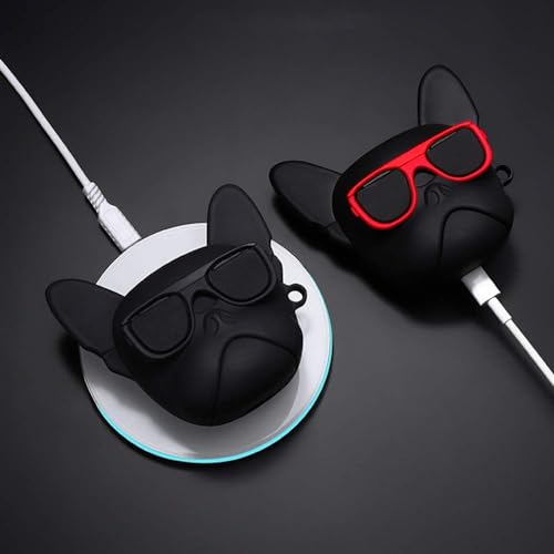 Next store - جراب حماية لطيف من السيليكون الناعم متوافق مع سماعات ايربودز برو تصميم كرتوني فريد نوعه بلاك بولدوغ انيقة وانيقة لجهازك نكست ستور اسود