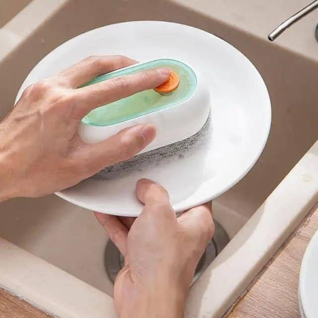 - توفير وراحة مزودة بـ خزان صابون مدمج يضخ السائل بضغطة زر بسيطة عند الحاجة، مما يسهل عملية التنظيف ويمنع الهدر في استهلاك المنظفات، ويغني عن الحاجة للمس الصابون مباشرة باليد.