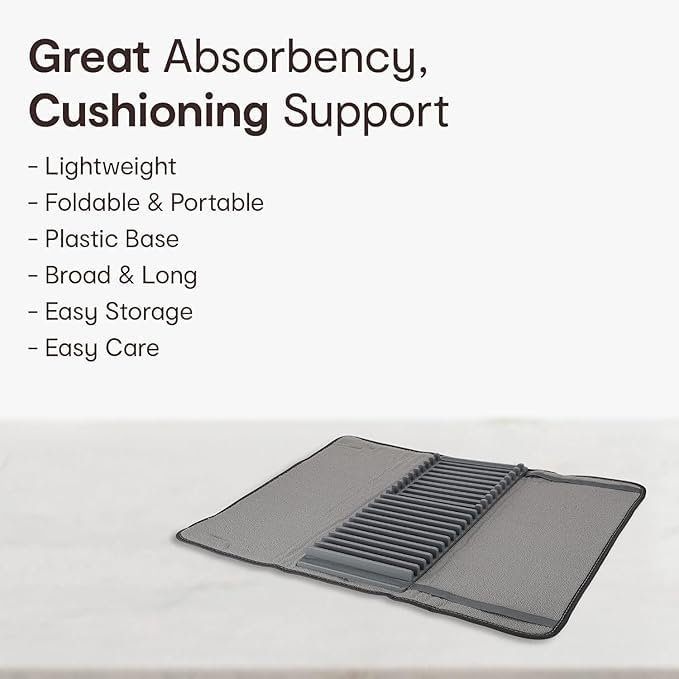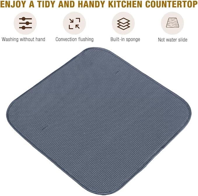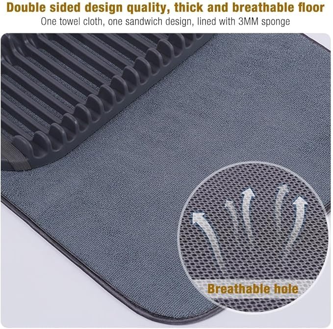 - [حصيرة امتصاص عالية الكفاءة]: مزود بحصيرة تجفيف تساعد في امتصاص الماء بسرعة من الأطباق والأكواب، مما يحافظ على سطح المطبخ جافًا ونظيفًا.