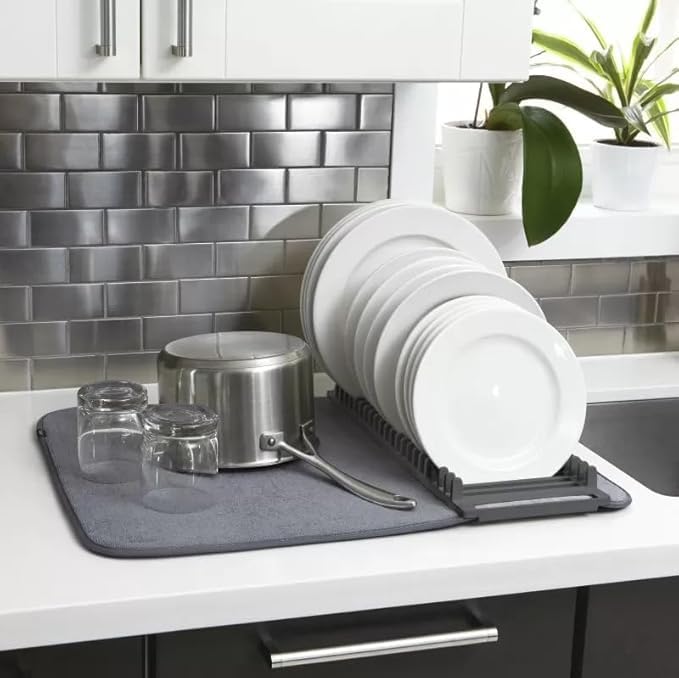 Next store - رف تجفيف الصحون من Next Store مع حصيرة قابلة للطي رمادي – بلاستيك عالي الجودة لتوفير المساحة وتجفيف الأطباق والأكواب
