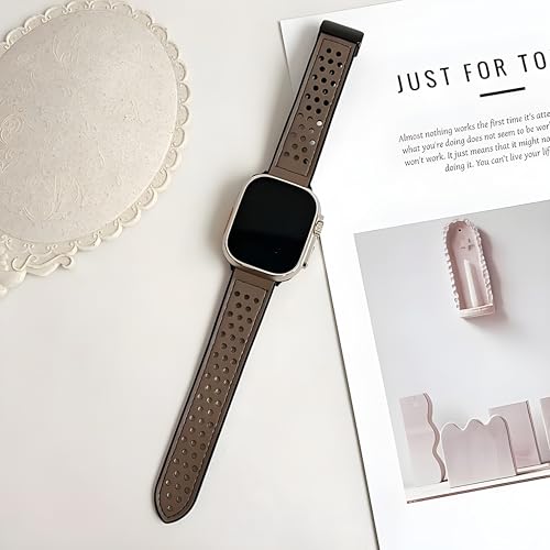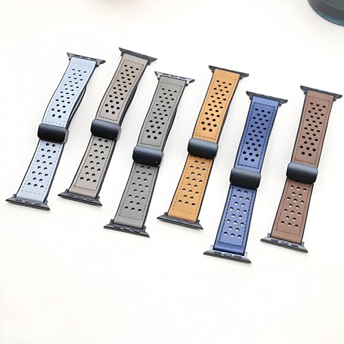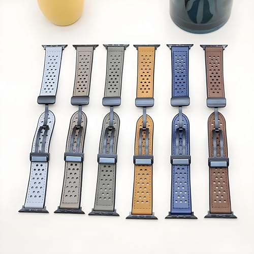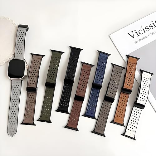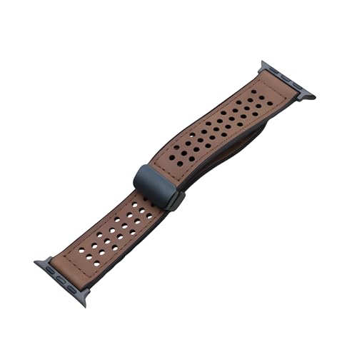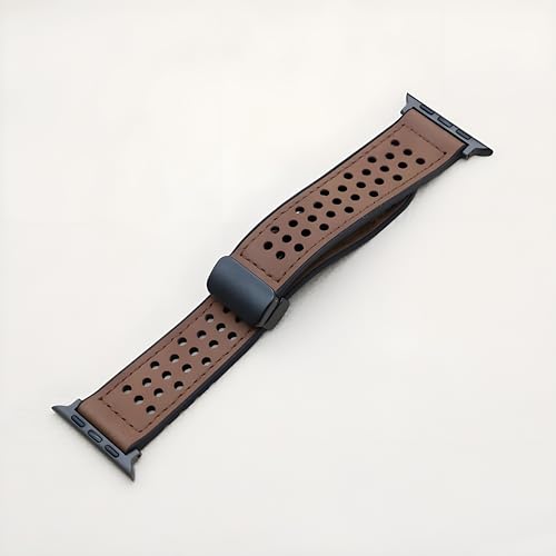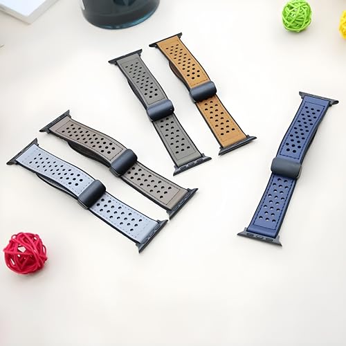 Next store - سوار جلد مبطن بالسيليكون من Next Store جيد التهوية بفتحة مزدوجة مع قفل معدني مقاوم للصدا مغناطيسي قابل للتعديل متوافق مع ساعه اي واتش 42$%& 9 سيرس 1 89 SE\Ultra\Ultra2
