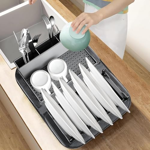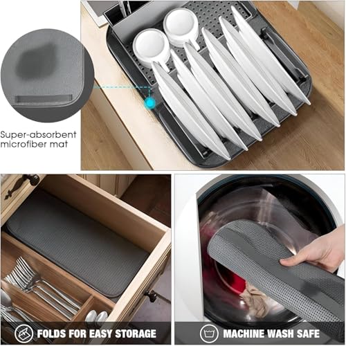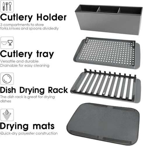 Next store - صفاية أطباق بلاستيك متينة من Next Store، مزودة بحامل أدوات المائدة ومفرش مايكروفايبر لتجفيف الأطباق، تصميم عملي وأنيق لتنظيم المطبخ