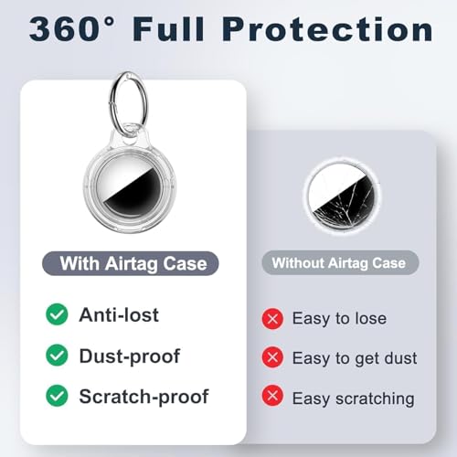 - [ حماية فعّالة ضد الخدوش والعوامل اليومية ] غطاء الحماية مصنوع من خامات مقاومة للخدش وتحافظ على مظهر AirTag كما لو كان جديدًا طوال فترة الاستخدام، كما يمنع تراكم الخدوش والبقع الناتجة عن الاحتكاك اليومي، مما يضمن مظهرًا أنيقًا وجاهزية دائمة لتتبع ممتلكاتك.